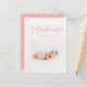 Stunning pink watercolor script text photo birth announcement. Part of a collection.