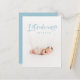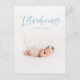 Stunning blue watercolor script text photo birth announcement. Part of a collection.