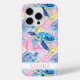 Customize this colorful watercolor sea turtles in pink and blue iPhone 15 pro case with your your name in a trendy modern CAP font in pink on white. It's so modern and trendy!