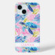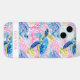 Customize this colorful watercolor sea turtles in pink and blue iPhone 15 case with your your name in a trendy modern CAP font in pink on white. It's so modern and trendy!
