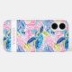 Customize this colorful watercolor sea turtles in pink and blue iPhone 16 case with your your name in a trendy modern CAP font in pink on white. It's so modern and trendy!