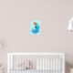 Poster in a watercolor design of a quirky, colourful seahorse with tan, turquoise, and aqua hues. The coiled tail and bumpy texture give it personality, and the soft turquoise background adds a dreamy underwater feel.