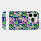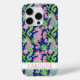 Customize this colorful navy blue, kelly green, and pink watercolor seahorses iPhone 15 pro case with your your name in a trendy modern CAP font in pink on white. It's so modern and trendy!