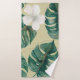 Watercolor seamless tropical pattern with exotic plants. Palm and deliciosa leaves, hibiscus
