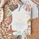 Cute summer beach theme bridal shower invitations feature a border of watercolor sea shells, starfish, and sea glass, including junonia, conch, sand dollar, auger, and clam. Personalise with your bridal shower details in the centre with gold foil accent lettering.