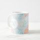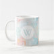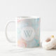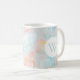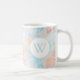 Watercolor seashell pattern monogram mug in shades of ocean and sunset.