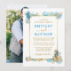 Watercolor Seashells Coral Photo Blue Wedding Invitation