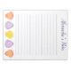 Write your thoughts on this large size notepad featuring colourful red, yellow, and violet seashells in watercolor, evoking a beach combing trip. Personalise it by adding your header using the available fonts.