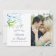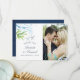 Trendy navy and white ocean theme beach wedding thank you photo cards featuring sea ferns, seaweed and starfish designed to be quickly and easily customised to your event specifics.