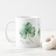 A watercolor illustration of a three green cloverleaves with the phrase "May your blessings be many." Personalise with your initials to make the coffee mug more special.