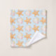 Watercolor shell and starfish painting repeat patterned towel set. Background colour light blue or you can change it to your favourite colour choice. Ideal for 17th shell wedding anniversary gift or just to show your love for the beach and shells and seastars. Original watercolor hand painting and pattern design by Sarah Trett for www.mylittleeden.com