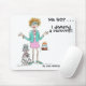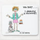 How can it be?! 50 already? Our red haired Lady is having trouble coming to terms with the reality of her years. Even her Poodle seems shocked by the news. Her green jacked and shoes, pink skirt and jewellery tell us she is on her way to a birthday party where a cake supporting a bonfire of candles awaits her. Have a friend turning 50? She may like this mouse pad on her computer desk as a reminder to find humour at every age milestone.