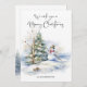 Watercolor Snowman and Merry Christmas Greeting Holiday Card