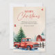 Send warm farmhouse wishes with this nostalgic Christmas holiday card. A classic red vintage pickup rests beside a wooden fence and pine tree while cardinals flutter around a red barn in a gentle snowfall—perfect for rustic, country and cabin Christmas styles.