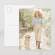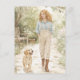 Send a heartfelt note with this dreamy watercolor postcard featuring a young woman walking her puppy through a blooming spring garden. Painted in soft pastels, gentle greens, and warm neutrals, this cottagecore-inspired design evokes calm, joy, and timeless charm. Perfect for spring greetings, friendship notes, thank-you messages, or simply brightening someone’s day. Ideal for lovers of floral art, countryside aesthetics, and delicate watercolor illustrations.