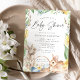 Invite guests to celebrate the mummy-to-be with our cute spring and Easter themed baby shower invitations. The baby shower invitations feature your baby shower details framed by watercolor blue and yellow flowers, green leaves and foliage, cute rabbits, and a basket full of Easter eggs. The Easter bunny baby shower invitations reverse to feature a solid light green background.