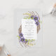 Wedding invitation featuring blue/ purple clematis, forsythia and green foliage, arranged in a "swoop" with decorative twigs.
