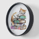 WATERCOLOR STACK OF BOOK WITH CUTE SLEEPING CAT CLOCK