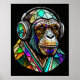 Watercolor Stained Glass Chimp Wearing Headphones Poster