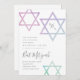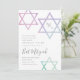 A modern, soft Bat Mitzvah invitation design by Stacey Meacham featuring ombre watercolor stars and a three initial monogram.