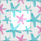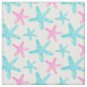 This unique watercolor starfish fabric features a repeating pattern in teal blue and pink. A perfect beach design for your nautical projects.