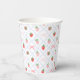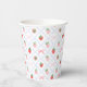 Watercolor Strawberries berry first birthday paper cups on a ribbonerie trellis background