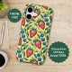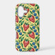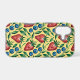 Joyful iPhone Case with fruity summer vibe - Watercolor Strawberry and Blueberry Pattern on a yellow Background - is an ai generated design and shows a seamless repeating fruity pattern with red Strawberries, blue Blueberries and green Leaves.