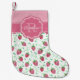 Watercolor Strawberry Pattern with Monogram Small Christmas Stocking