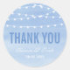Watercolor String Lights wedding design was created by Aubergine and Purple. This modern design includes a string of lights with a soft glaucous blue watercolor background.