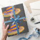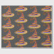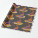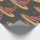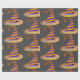 Whimsical watercolor Halloween pattern features orange and purple striped witch hat on black background
