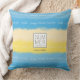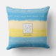 Watercolor stripes in two tone blue and yellow summer colours with calligraphy written summer ocean sunny beach script.