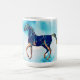 My original digital artwork consisting of a vintage illustrated horse, reworked into an aqua blue abstract colour style and placed on an aqua watercolor background. The background pattern complements the horse colours to make a one-of-a-kind design. These are 15-ounce mugs, just the perfect size for your home brewed coffee or tea - or even hot chocolate! It would make a great gift and you can put packets of coffee, tea bags or hot chocolate inside - or a little plant - to make it extra special for your loved one, especially a horse lover!
