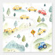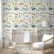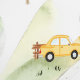A whimsical repeating pattern featuring yellow cars, a red car, and a blue tractor traveling along a curvy country road surrounded by watercolor hills, trees, and gentle road signs—creating a soft, storybook world perfect for kiddos who love vehicles and cozy outdoor adventures.