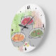 Watercolor style cooking sauce pots with steaming aromas and cloudy background on this kitchen clock for cooks and chefs.