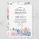 Elegant wedding bridal shower invitations featuring a classic white background, a watercolor display of pastel flowers & succulents, and a stylish bridal party template that is easy to personalise.