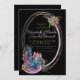 Virtual wedding invitations with bright watercolor succulents with gold drawing outlines and oval structure for a rustic feel. Black background and purple accents colours can be change to any colour.