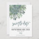 This save the date features handmade watercolor succulent graphics to tell your friends and family to save your date!