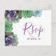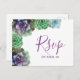 This RSVP postcard features watercolor succulents in green and purple. If you'd like to add any matching items, don't hesitate to contact me.