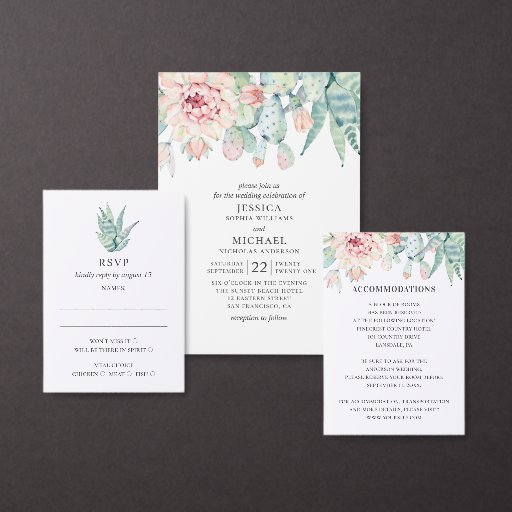 Watercolor succulents. Wedding rehearsal dinner Invitation