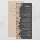 Wedding menu with cream coloured peach watercolor boho flowers on a grey background.