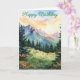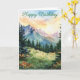 A lovely watercolor mountain during summer with trees and flowers. Suitable for a birthday card, for anyone