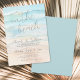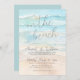 Seaside Watercolor "On the Beach" Summer Wedding Invitation. Set the tone for your coastal celebration with this elegant invitation featuring a soft watercolor background in calming shades of blue and tan. The design captures a peaceful view of the shoreline where the waves gently meet the sand, offering a slightly abstract take on a beach setting—relaxed, not overly literal.