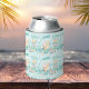 Can cooler featuring a watercolor tropical summer surf party-themed design. The design features a pastel watercolor aesthetic with a light blue background and beach-related illustrations. Phrases such as "Enjoy Your Summer" in stylish, handwritten-style lettering, two surfboards, one with the word "Aloha" written on it, colourful wooden signposts pointing in different directions, with words like "Beach," "Surf," "Bar," and "Sea" written on them. A tropical drink in a coconut shell with a straw and garnished with a flower and citrus slice. A pink-and-orange gradient acoustic guitar. Palm trees, tropical leaves, and flowers adding to the beachy vibe. The overall aesthetic is bright, fun, and ideal for summer parties or beach outings.