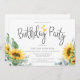 This cheerful sunflower birthday party invitation will set the tone for your party. This design features watercolor painted sunflowers, fun hand-drawn lettering, and whimsical hearts on a white background.