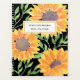 This unique Planner is decorated with yellow watercolor sunflowers and green leaves on a black background.