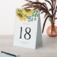 Complete your event's tablescape with this floral table tent sign. It features watercolor illustrations of sunflowers and eucalyptus leaves. Personalise by adding number, names, event and date. This sunflowers table numbers will be perfect for summer or fall weddings, baby showers, bridal showers, birthdays and so much more.