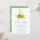 Trendy hand painted watercolor sunflower brunch and bubbly invitation with sage green watercolor wash background.