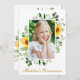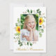 Modern Elegant First Holy Communion Watercolor Sunflowers and Botanical Greenery Gold Photo Invitation Card