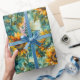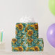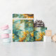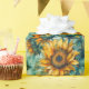 An artistic rendering of watercolor sunflowers on a lighter background of greens and blues.
