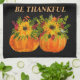 Be thankful. Beautiful watercolor Sunflowers floral, pumpkins design kitchen towel. Cute, vintage, modern, pretty kitchen towel. Perfect for her, for thanksgiving.